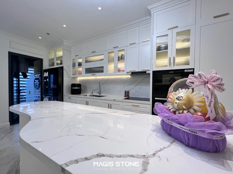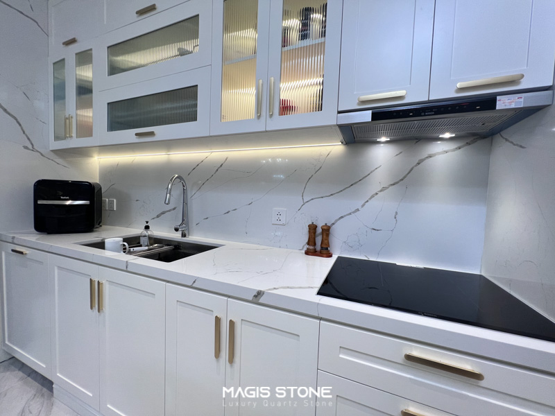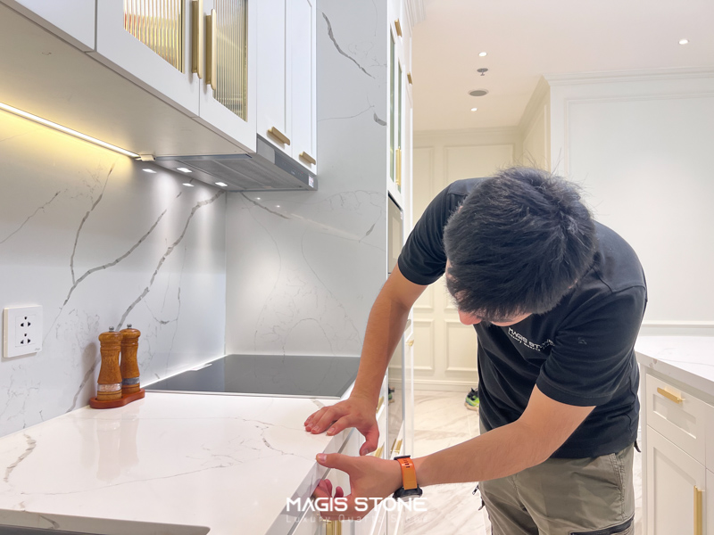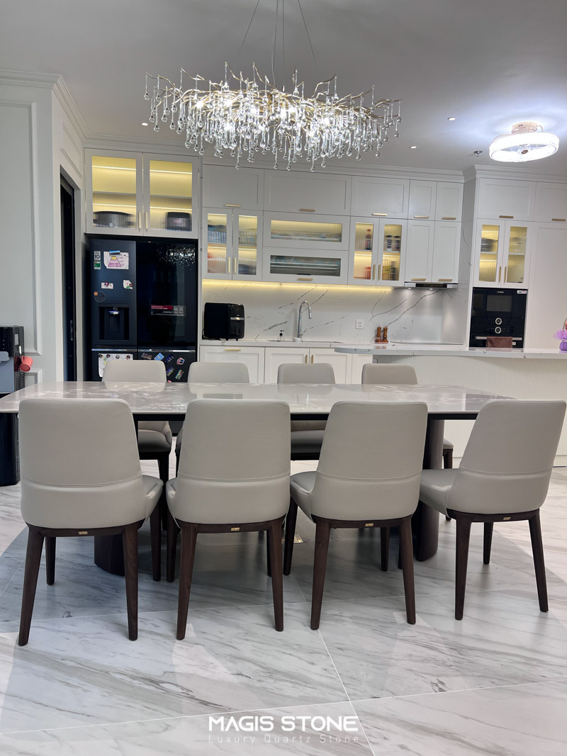 Hiểu được mong muốn của gia chủ về một không gian bếp hiện đại và sang trọng, Magis Stone đã tư vấn và lựa chọn những loại đá có màu sắc, vân đá và đặc tính phù hợp nhất.