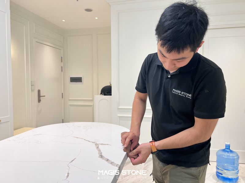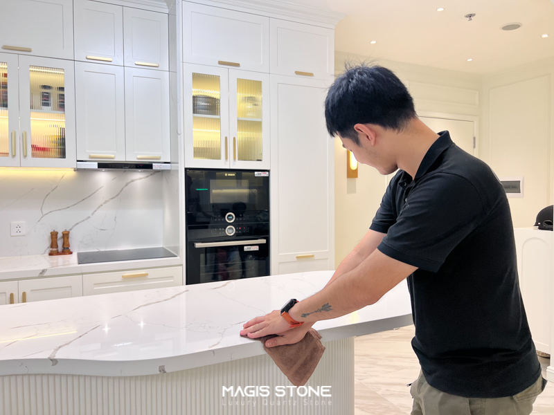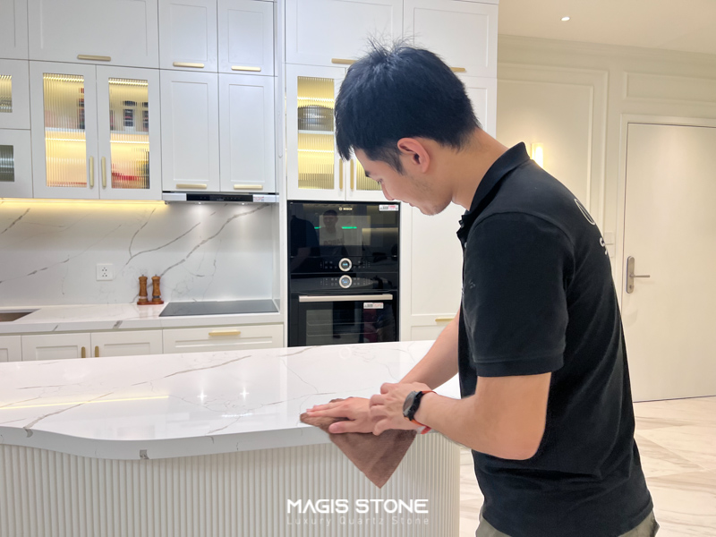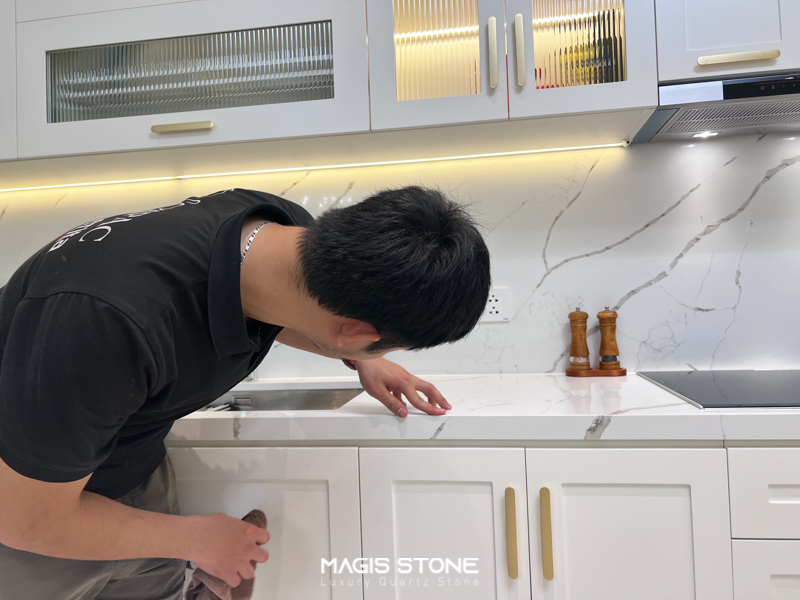 Không chỉ chú trọng đến tính thẩm mỹ, Magis Stone còn đặc biệt quan tâm đến chất lượng và độ bền của sản phẩm. Với quy trình thi công chuyên nghiệp, tỉ mỉ, chúng tôi cam kết mang đến cho khách hàng những sản phẩm hoàn hảo nhất, cùng chính sách bảo hành mặt đá 25 năm – tốt nhất trên thị trường hiện tại.